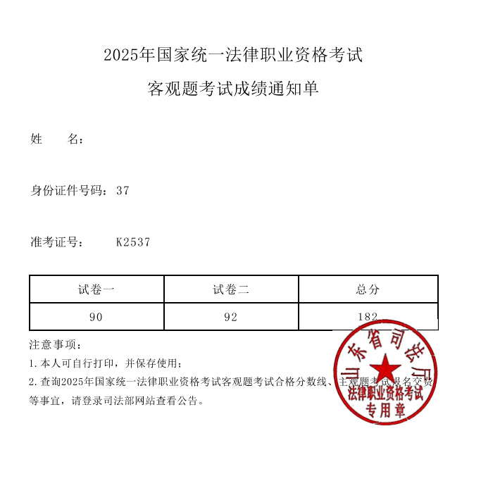 从2022年至2024的179,164,175三年都没过,2025年这次基本上是裸考,只学了一点民法、行政法和理论法,考试的时候感觉民法和卷一做的还可以,其他做的不好,不过几乎都看了题目,认真的选了答案。没想到考了182分,也许是多年的坚持,赶上了好运,才低分通过的。